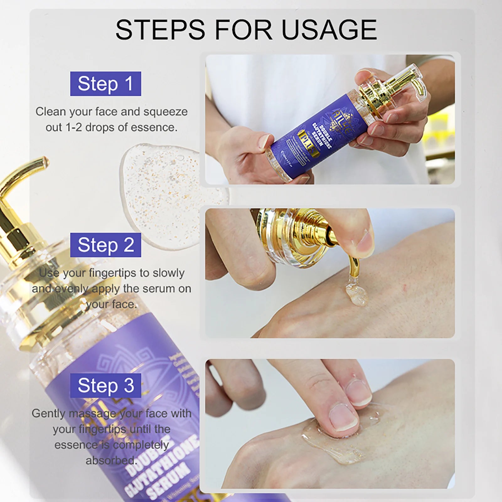 - Main Ingredients: Double Glutathione Complex, Natural Brightening and Anti-Aging Extracts